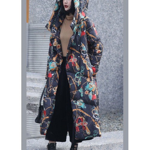 Fashion Elegant Print Oriental Winter Long Puffer Jackets Duck Down Coat