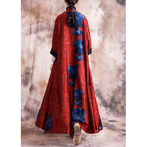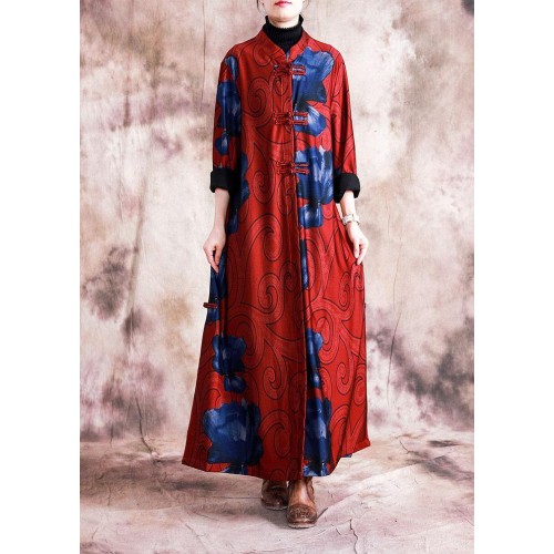 boutique plus size Winter coat fall women coats black patchwork green print Chinese Button coat for woman