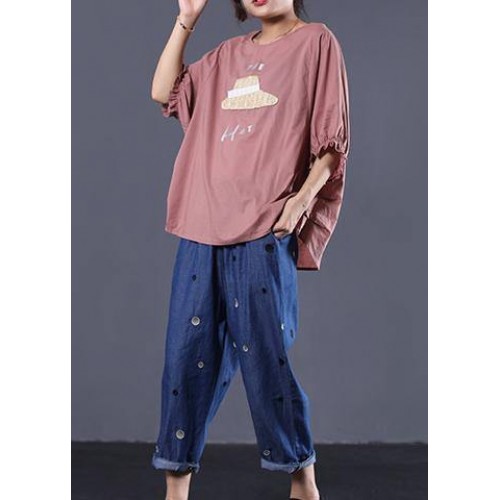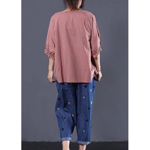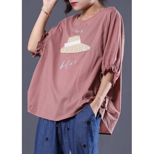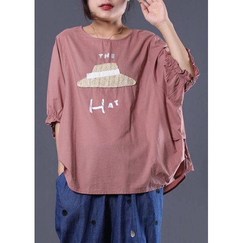 Handmade o neck cotton Long Shirts Inspiration pink prints top summer