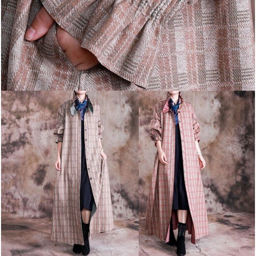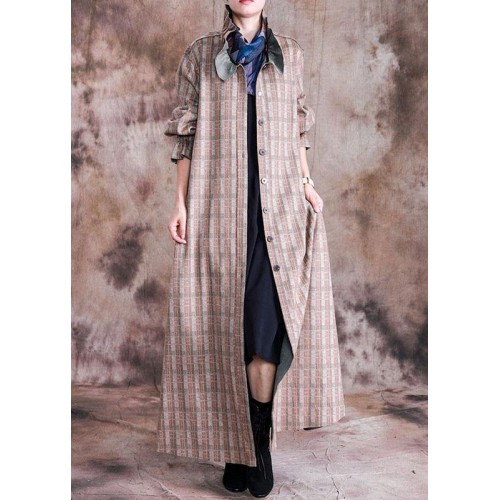 boutique plus size long coat fall woolen outwear khaki plaid Cinched wool coat for woman