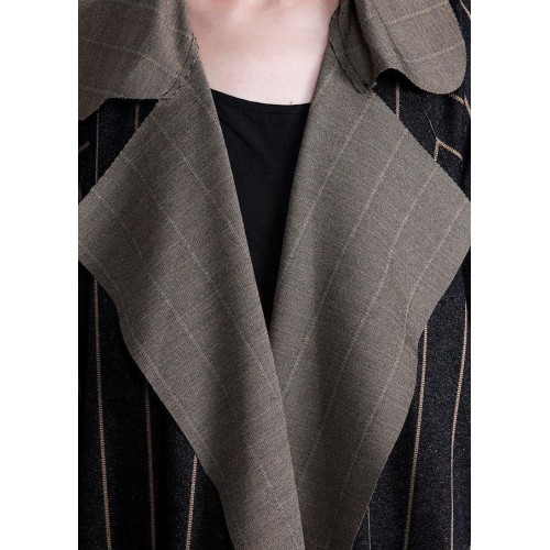 Elegant plus size long fall coat black striped Notched large hem wool overcoat
