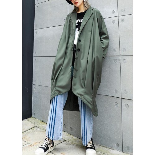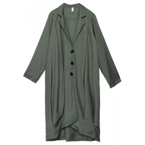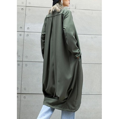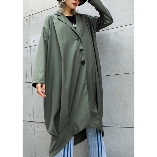 boutique gray green Coats Women oversize maxi coat Notched pockets asymmetric outwear