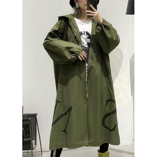 2019 army green coat plus size long fall coat hooded pockets zippered outwear