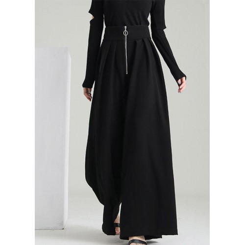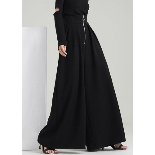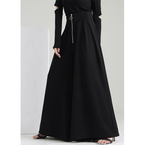 Plus Size Black Zip Up Pockets Cotton wide leg pants Spring