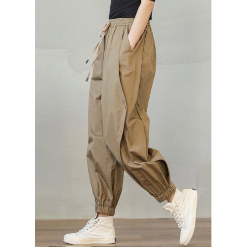 Casual Khaki Pockets elastic waist drawstring harem Pants Spring
