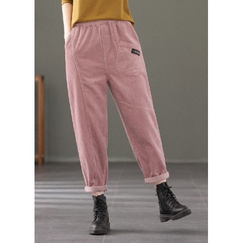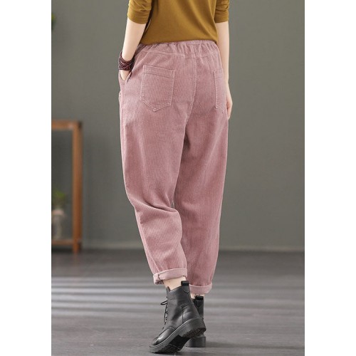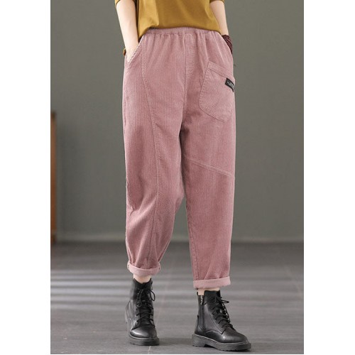 Plus Size Pink elastic waist Pockets Patchwork Corduroy harem Pants Spring