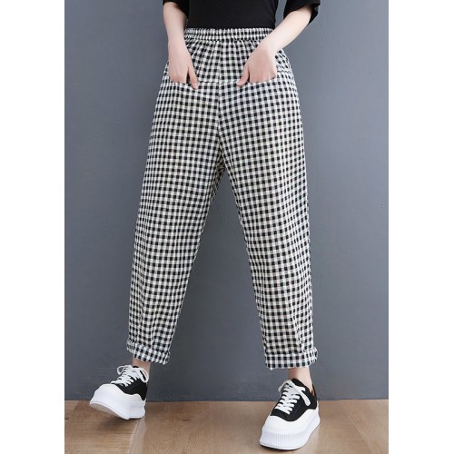 Vintage Black Plaid Pockets Harem Pants Spring