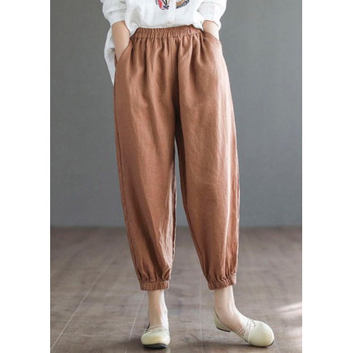 Orange Loose Cotton Pants Pockets Summer