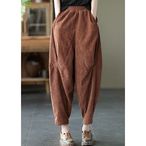 Coffee Corduroy harem Pants elastic waist Spring