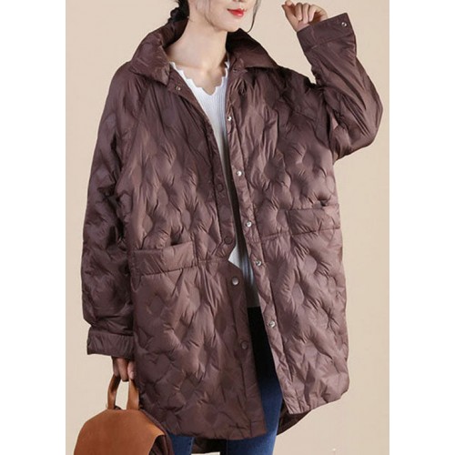 Coffee Stand Collar Button Loose Winter Puffers Long Down Jacket