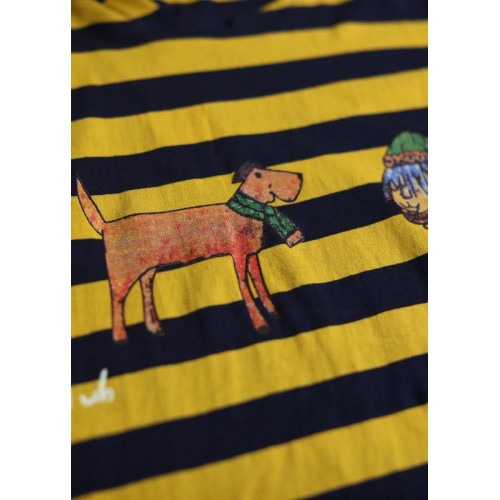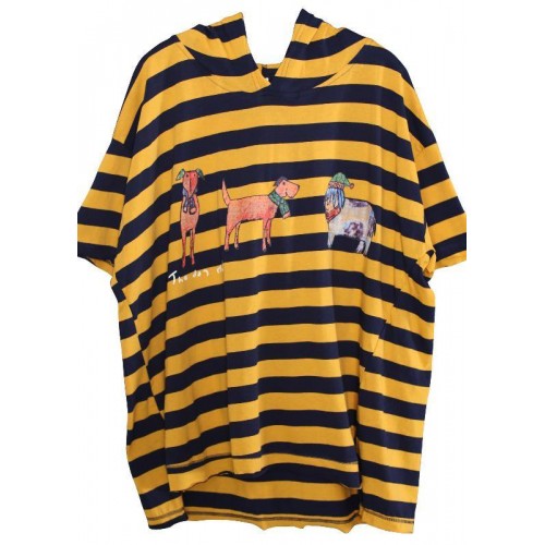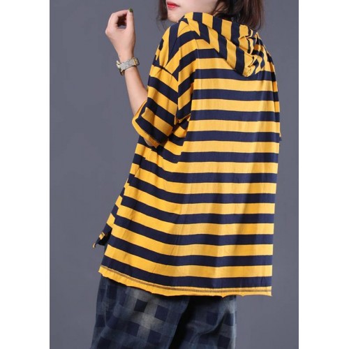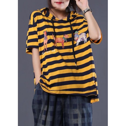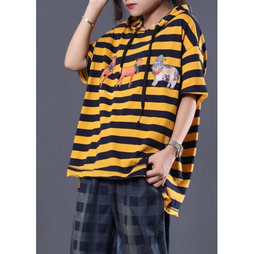 Women Cartoon print cotton top silhouette Neckline yellow striped shirt summer